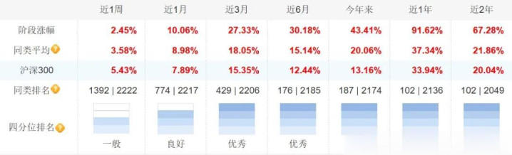 业绩上,A类份额近一年收益率91.62%,近两年收益率67.28%。