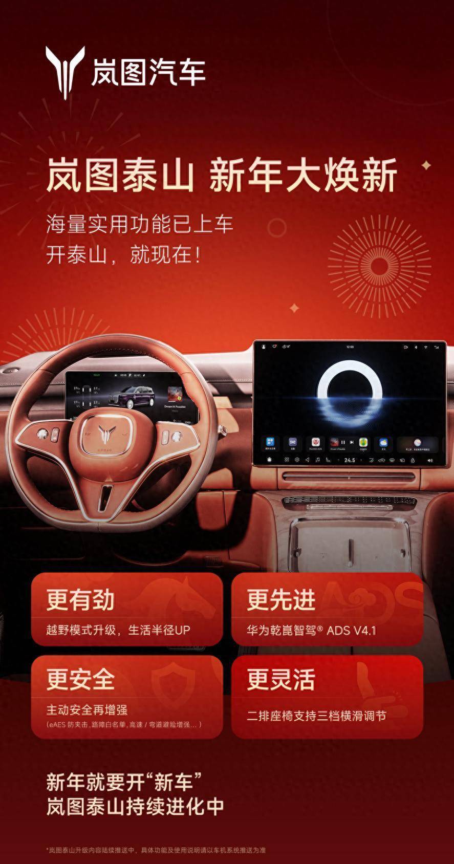 以乾崑之智,成泰山之稳。岚图泰山此次OTA股票配资开户会员,既是产品力的全面进阶,更是岚图“以用户为中心”与技术创新的集中体现。华为顶级智驾+独有的越野优势+贴合需求的座舱优化,重新定义高端商务SUV的全能边界。未来,岚图汽车将继续秉持“共赴美好生活”的品牌使命,以技术创新驱动产品升级,为高端用户打造更有温度、更全能的智能移动空间,推动高端商务SUV市场进入全场景发展的新阶段。