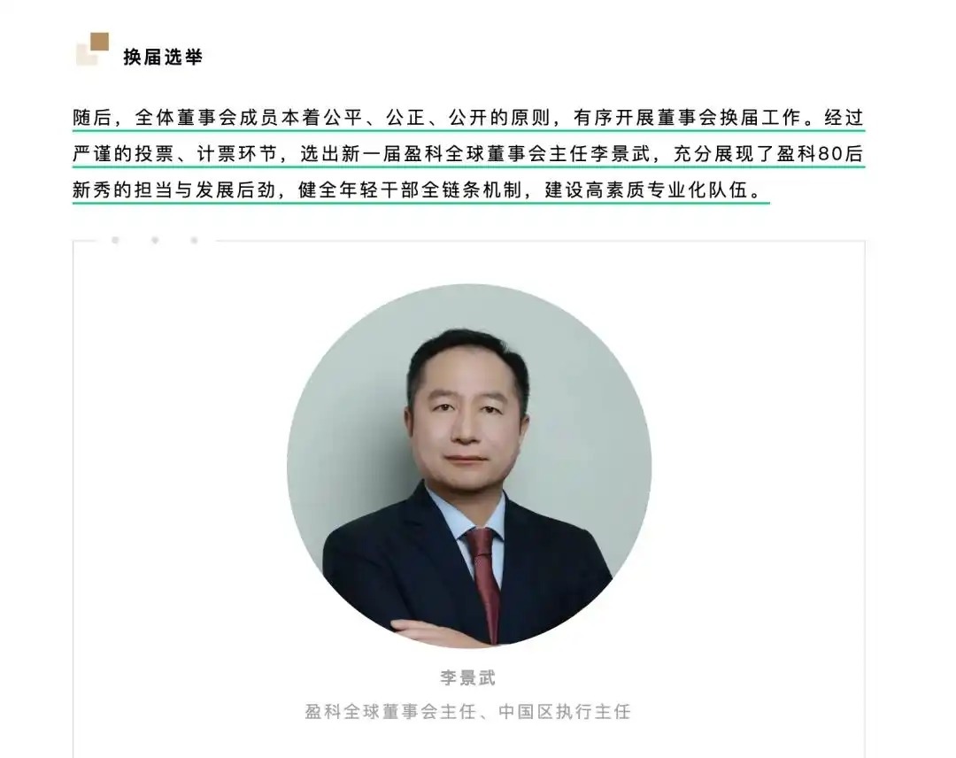 此前该职务由梅向荣担任,此次人事调整也意味着,梅向荣不再担任盈科律师事务所全球董事会主任一职。值得一提的是,盈科律师事务所在推文中并未提及梅向荣,仅表示,董事会成员本着公平、公正、公开的原则,有序开展董事会换届工作。